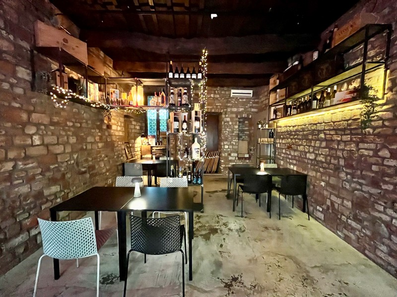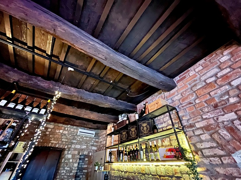 Il locale è stato recentemente ristrutturato con grande gusto, valorizzando e recuperando i materiali storici della costruzione: pietra a vista, legni originali e finiture artigianali che restituiscono un'atmosfera intima, raffinata e al tempo stesso conviviale.