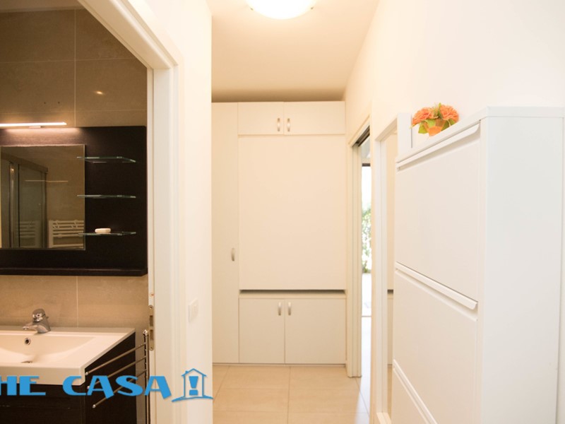 In elegante palazzina del 2005, a pochi passi dal centro e dai principali servizi, proponiamo in vendita grazioso appartamento con ingresso totalmente indipendente, composto da: ingresso su sala, cucinotto separato, due camere da letto confortevoli, bagno con sanitari sospesi. L'immobile è circondato da due ampi portici, uno nella zona giorno e uno nella zona notte, oltre a giardino privato di circa 150 mq, ideale per momenti di relax all'aperto, con la possibilità di parcheggiare comodamente anche 2 auto. Completano la proprietà un garage al piano interrato e arredi inclusi nel prezzo. L'appartamento è dotato di aria condizionata, riscaldamento a pavimento, impianti a norma e finiture moderne.