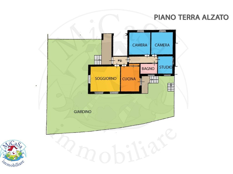 Limmobile si compone di un ampio ingresso, spazioso soggiorno, cucina abitabile con accesso diretto al giardino, due camere matrimoniali, uno studio e un ampio bagno finestrato.