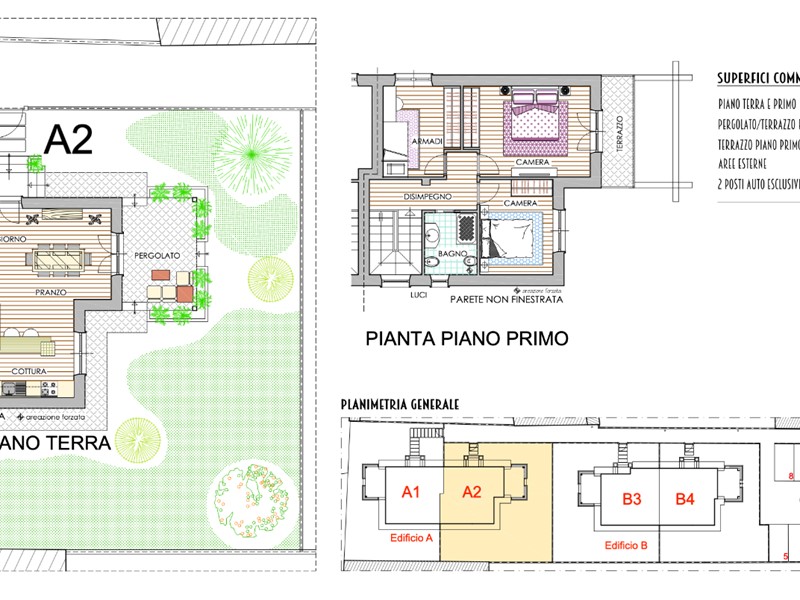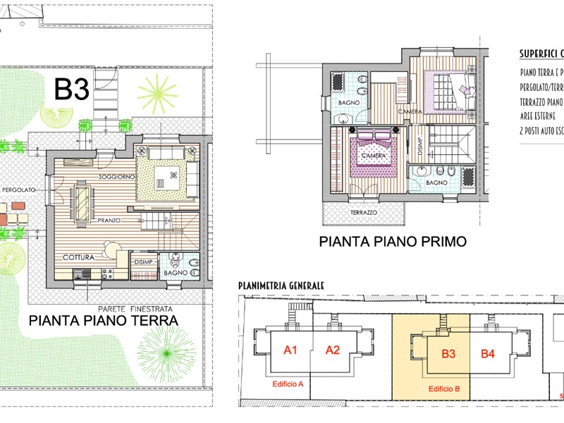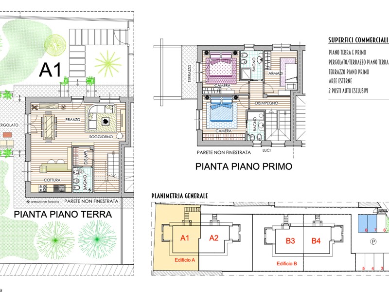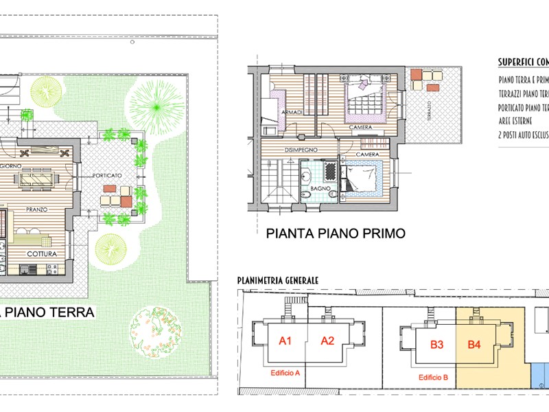 Comfort, spazio e funzionalità si incontrano.Queste Residenze su due livelli offrono un'ampia zona giorno al piano terra, perfetta per momenti di relax e convivialità, con living, zona pranzo e cucina Open Space e un pratico bagno di servizio.Al piano superiore, la zona notte, con due o tre camere e bagni privati.Vivi il tuo spazio all'aperto con pergolato o porticato, balconi/terrazze e un giardino privato su tre lati e per la tua comodità, due posti auto esclusivi.