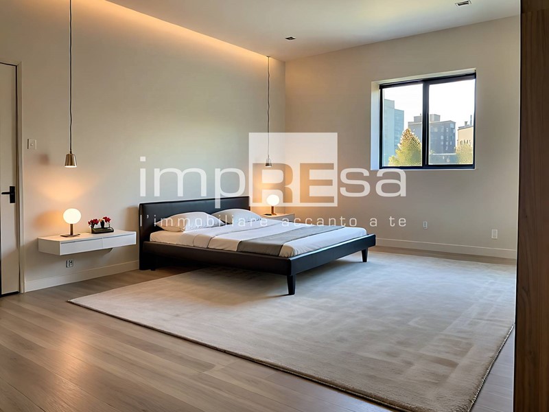 Attraversando il disimpegno di 1,90 metri quadrati si raggiunge la zona notte composta dalla camera matrimoniale di 16,04 metri quadrati, servita di bagno padronale privato finestrato di 4,37 metri quadrati, una camere da letto di 10,55 e il bagno principale finestrato di 5,42 metri quadrati.