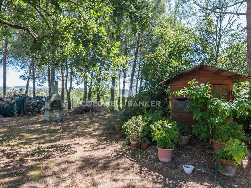 Allesterno, un grande giardino esclusivo circonda limmobile, circondato da circa 11.000 mq di terreno suddiviso tra bosco, uliveto e seminativo, offrendo spazio per vivere al meglio loutdoor: area relax, orto o zona barbecue