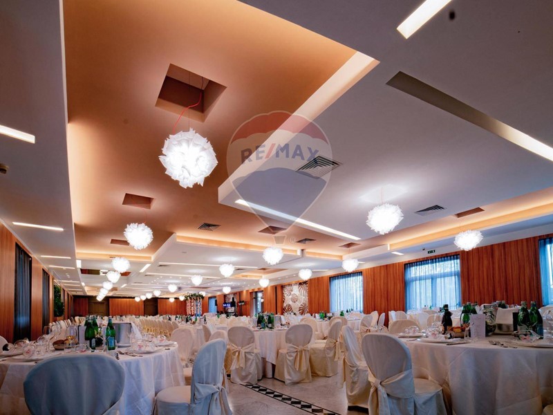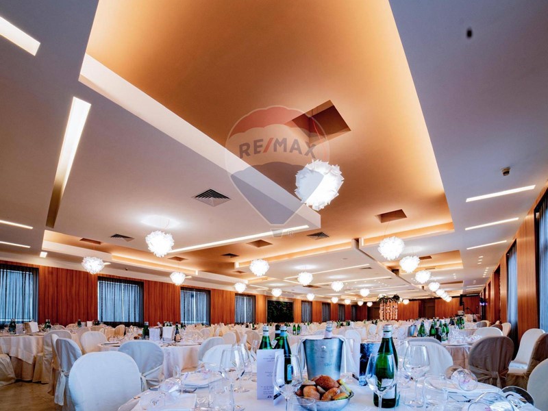 Sullo stesso piano troviamo la sala ristorante con capienza di 100 coperti, sala banchetti 300 di posti, bagno e cucina .
