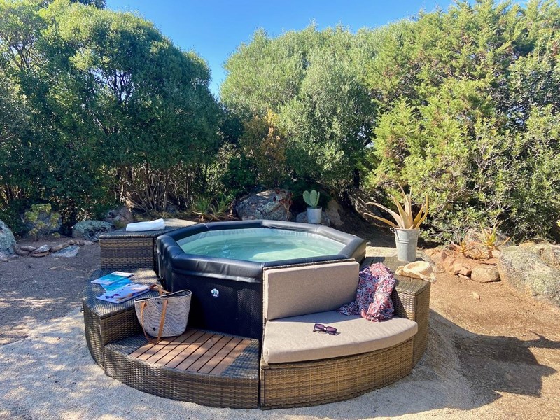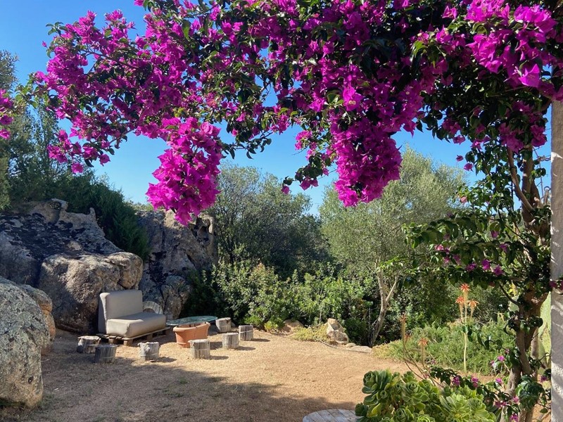 Il giardino circostante, di circa 500 m² su un terreno totale di 30.000 m², è un paradiso naturale. Troverete angoli relax, zone pranzo allaperto, due docce esterne, una jacuzzi e una piscina fuori terra (7,33 x 3,66 x 1,30). Tra le rocce e la vegetazione spontanea si nascondono percorsi e punti panoramici unici, ideali per contemplare la bellezza selvaggia della Gallura.