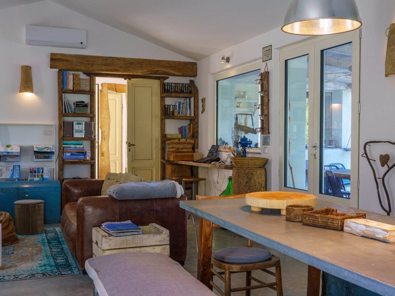 La zona giorno è un ampio open space dominato dalla luce e dalla vista: un grande soggiorno con camino, zona studio con panorama mozzafiato e cucina completamente attrezzata, arricchita da tocchi industriali e accenti vintage. Due verande coperte e unampia terrazza completano gli spazi conviviali, ideali per cene allaperto, relax e momenti di condivisione.