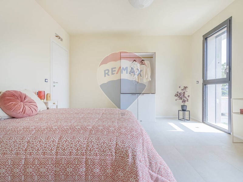 La zona notte accoglie bagno cieco e ampia camera matrimoniale.