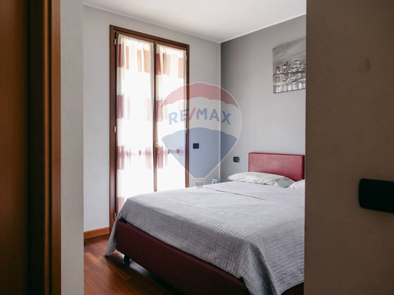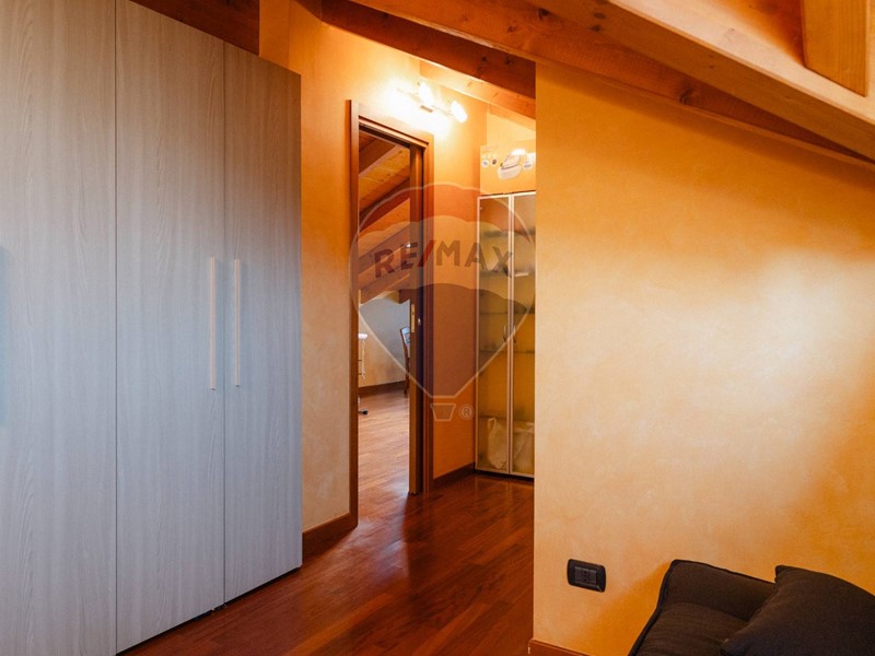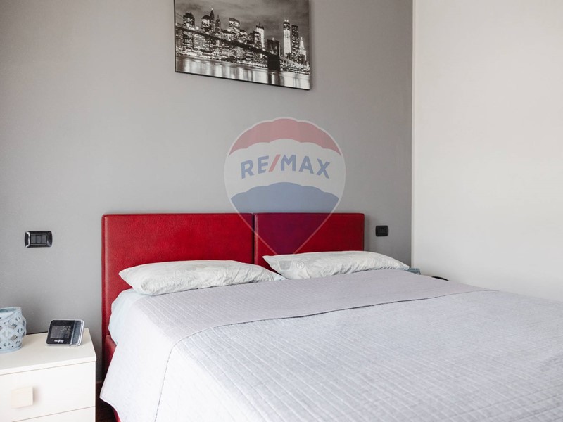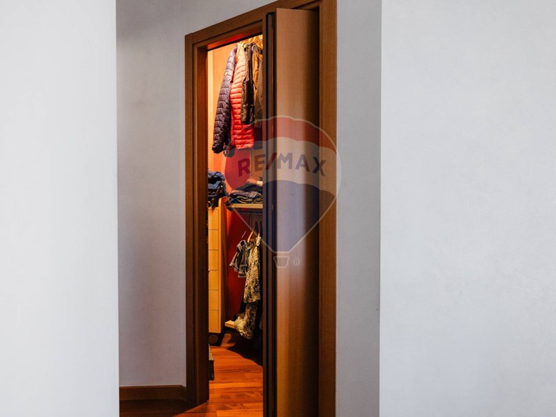 Un piccolo disimpegno con ripostiglio collega la zona giorno alla camera matrimoniale, dotata di una cabina armadio e accesso al secondo balcone. A completare il piano, un bagno.