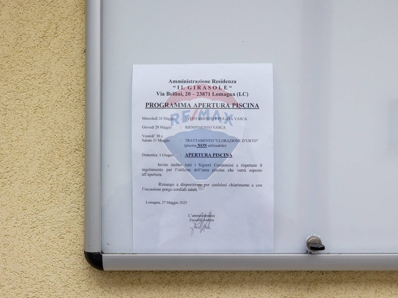 La proprietà si completa con un box doppio di 25 mq e diritti di proprietà sulla piscina condominiale.