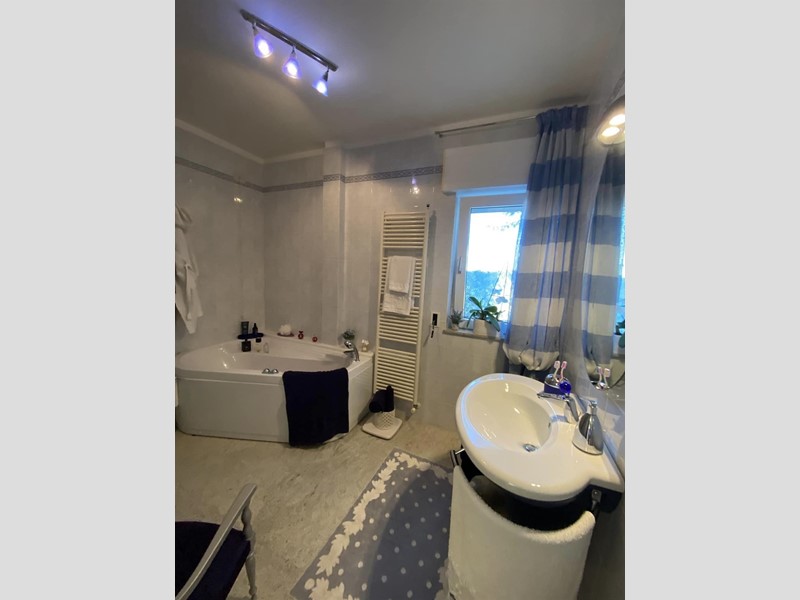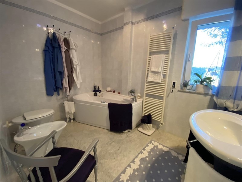 Ampio giardino su tre lati , esposizione della casa a sud est e sud ovest , con ampio locale deposito e garage di 141 mq circa sono solo alcune delle caratterische che contribuiscono a renderla esclusiva , unitamente alla composizione interna dell'appartamento rifinito e arredato con cura , che per la maggior superficie ospita una ampia zona giorno con angolo cottura finestrato , tre camere , doppi servizi e ripostiglio.