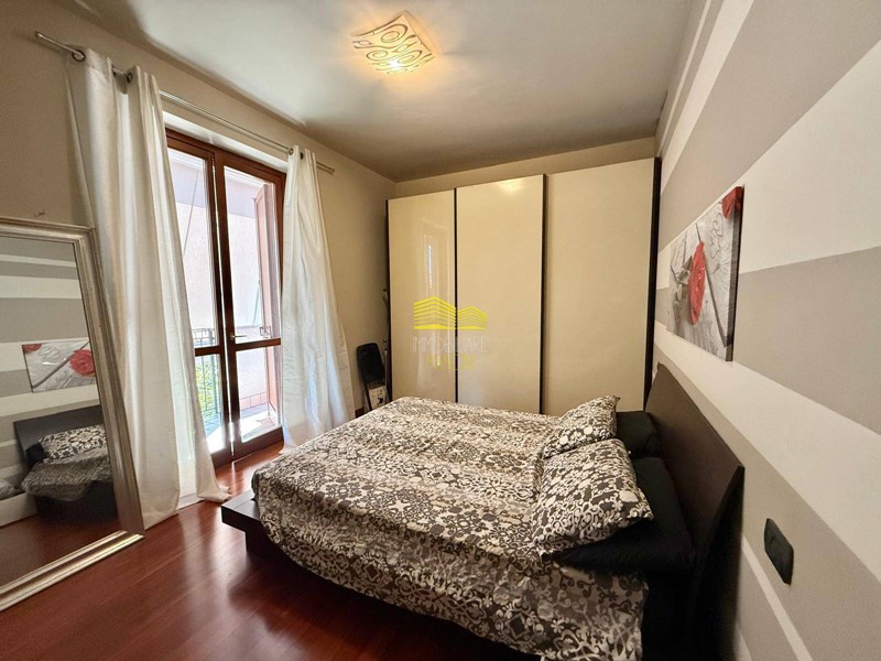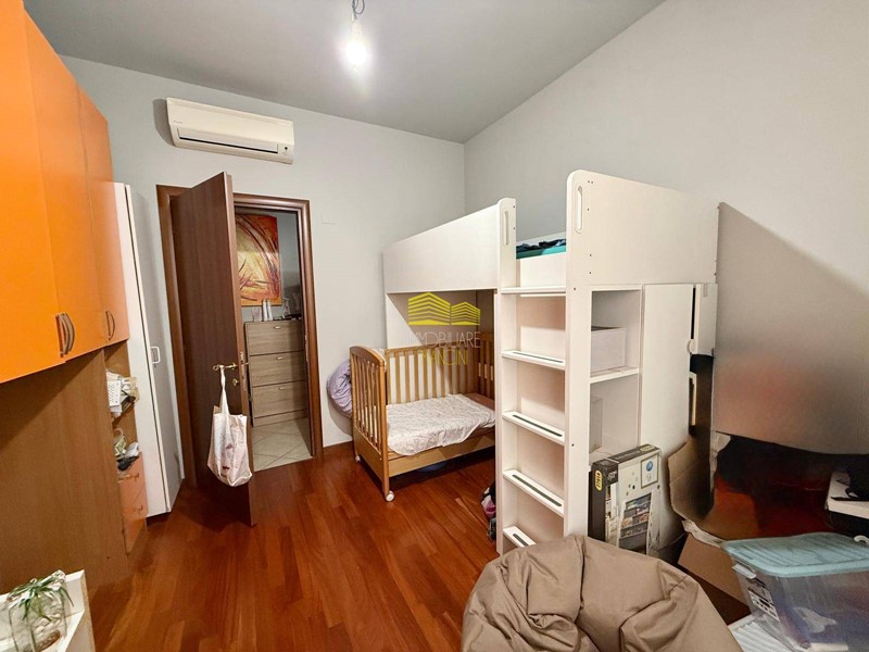 Ingresso in corridoio con armadiatura e ripostiglio, luminosa zona living con cucina a vista e accesso su TERRAZZINO di 14 mq, disimpegno, bagno finestrato con doccia, cameretta (con secondo accesso su terrazzo) e camera matrimoniale con sbarco su BALCONE di 7 mq.