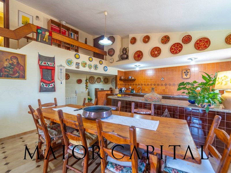 La casa si sviluppa su tre livelli, collegati tra loro da scale interne: piano terra, primo piano e seminterrato. Al piano terra si trova un ampio e luminoso soggiorno con doppio affaccio su terrazze panoramiche. A completare il livello, una camera da letto, uno studio e un bagno di servizio. Scendendo al piano seminterrato si accede a una spaziosa cucina con accesso diretto allesterno e un ulteriore bagno. Sono presenti anche diversi locali adibiti a dispensa e magazzino, facilmente trasformabili in una zona benessere, una palestra o un appartamento indipendente. Il primo piano è interamente dedicato alla zona notte: tre camere da letto, di cui una con bagno privato, un secondo bagno e ampie verande che regalano una vista sulla campagna gallurese e sullisola di Tavolara.