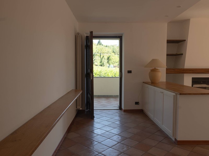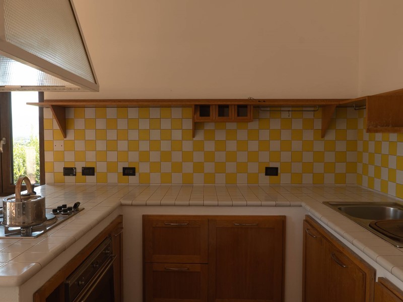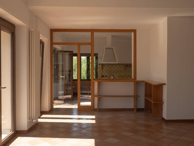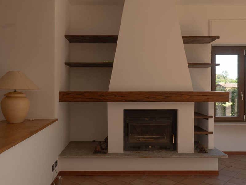 Al piano terra si trovano una comoda zona giorno con cucina abitabile e soggiorno in open space, una camera da letto, un bagno e una lavanderia, oltre al vano scala che collega i due livelli. Il piano superiore, accessibile anche da un ingresso indipendente esterno, accoglie un ampio salone con camino, una seconda cucina abitabile con uscita su un grande terrazzo affacciato sul verde, due camere da letto e due bagni.