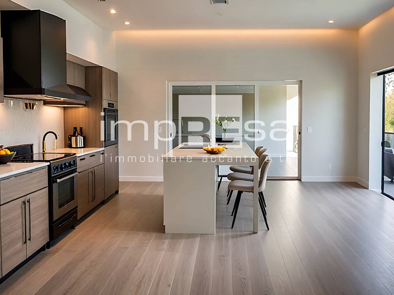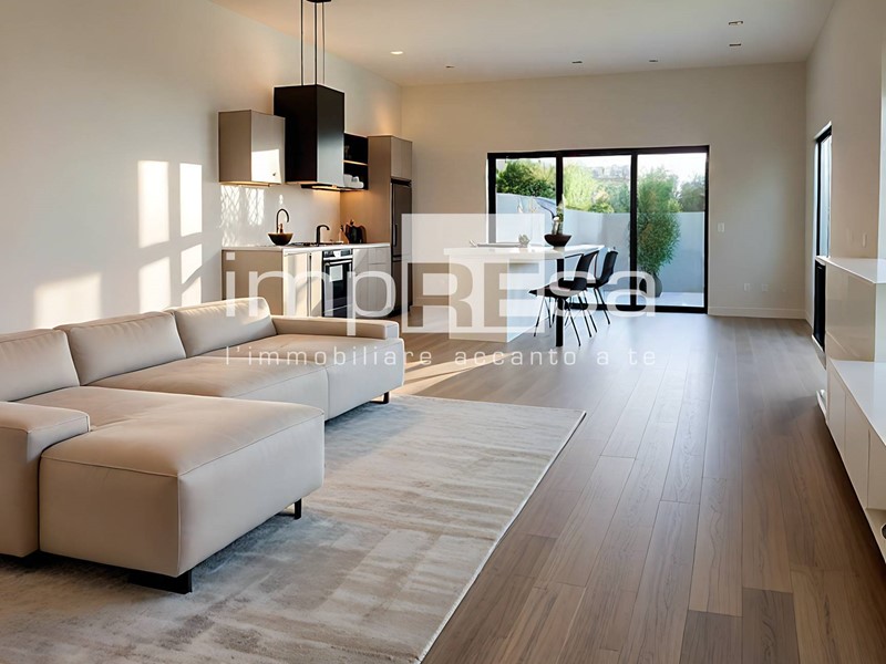 L'ingresso conduce alla zona giorno di 33,72 metri quadri, un open-space dalla quale si può accedere al giardino privato di 265 metri quadri, ideale per pranzi all' aperto o momenti di relax all' aria aperta.