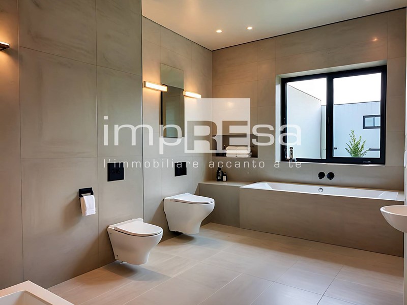 L' immobile è dotato di riscaldamento radiante a pavimento e di un impianto di condizionamento con due split interni, alimentati dall'impianto fotovoltaico con una potenza minima di 3 kw per ogni unità abitativa