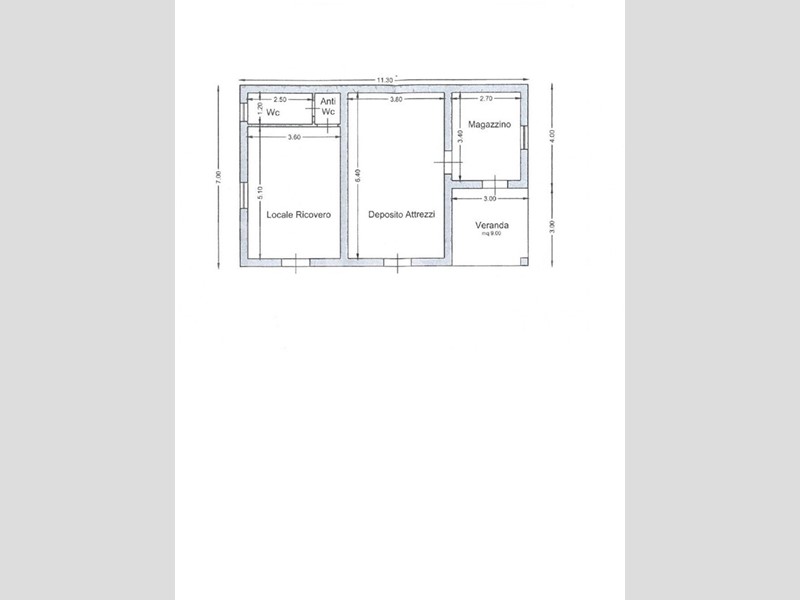 Il fabbricato rurale si sviluppa su un unico livello composto da una veranda esterna che conduce nella prima stanza utile come magazzino, una stanza adibita a deposito attrezzi, un altro vano adibito a locale ricovero e bagno con finestra.