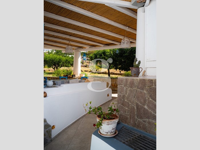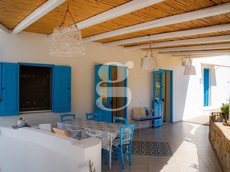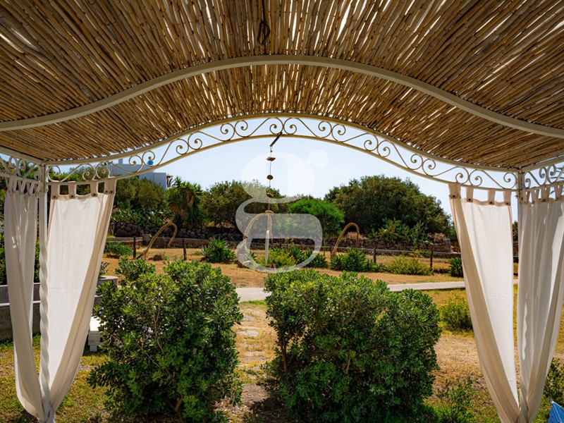 All'esterno, la proprietà si trasforma in un'oasi di pace e tranquillità, con una zona dedicata a colazioni, pranzi e cene all'aperto circondata da piante mediterranee e il profumo del mare. Un ampio giardino verde è il luogo ideale per rilassarsi all'ombra, leggere un libro o godersi un bicchiere di Malvasia, mentre il cielo si accende di arancio e porpora al tramonto, regalando uno spettacolo unico sotto un cielo stellato e con l'aria salmastra che accarezza la pelle. È il luogo dove l'ospitalità incontra l'anima dell'isola, dove ogni ospite può sentirsi parte di qualcosa di autentico.
