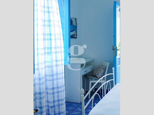 La struttura, attualmente operativa e pronta ad accogliere ospiti provenienti da tutto il mondo, dispone di ben 8 camere con possibilità di ampliamento, una zona ristorazione in un suggestivo terrazzo all'aperto, una cucina funzionale e ben organizzata, un angolo bar e ampi spazi esterni di circa 1200 mq che offrono la possibilità di realizzare una piscina per il relax degli ospiti. Ogni ambiente è progettato per offrire un'atmosfera di calma e riposo, con uno stile tipico eoliano caratterizzato dai colori celeste e bianco.