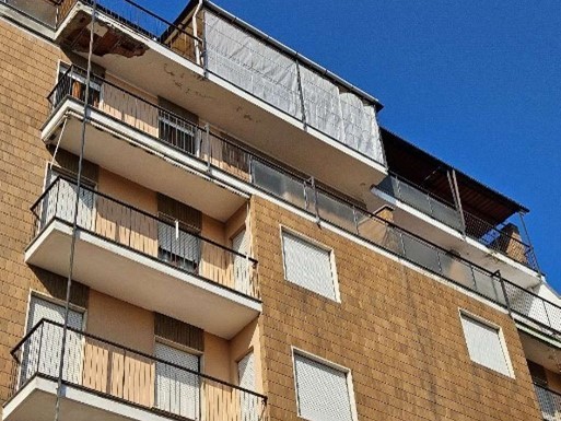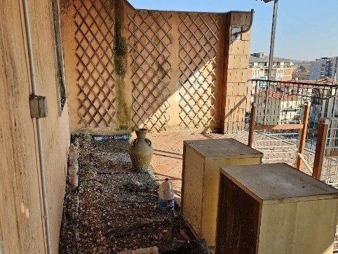 Appartamento sito al sesto piano in condominio con ascensore e cantina, composto da un solo ambiente con disbrigo cucina e bagno,. L'alloggio dispone di un grande balcone e un ampio terrazzo parzialmente coperto da tettoia. Il terrazzo versa in pessime condizioni ed è coperto da guano ed erbe infestanti e necessita di opere di manutenzione.