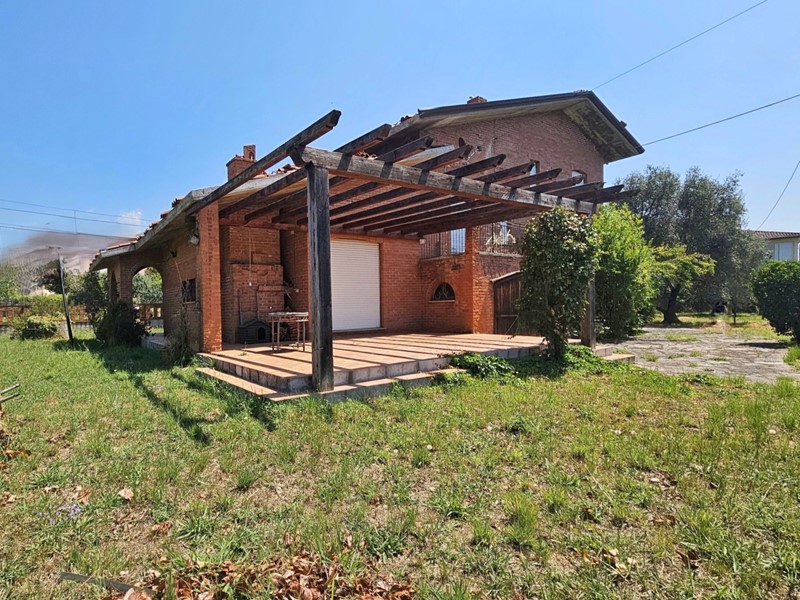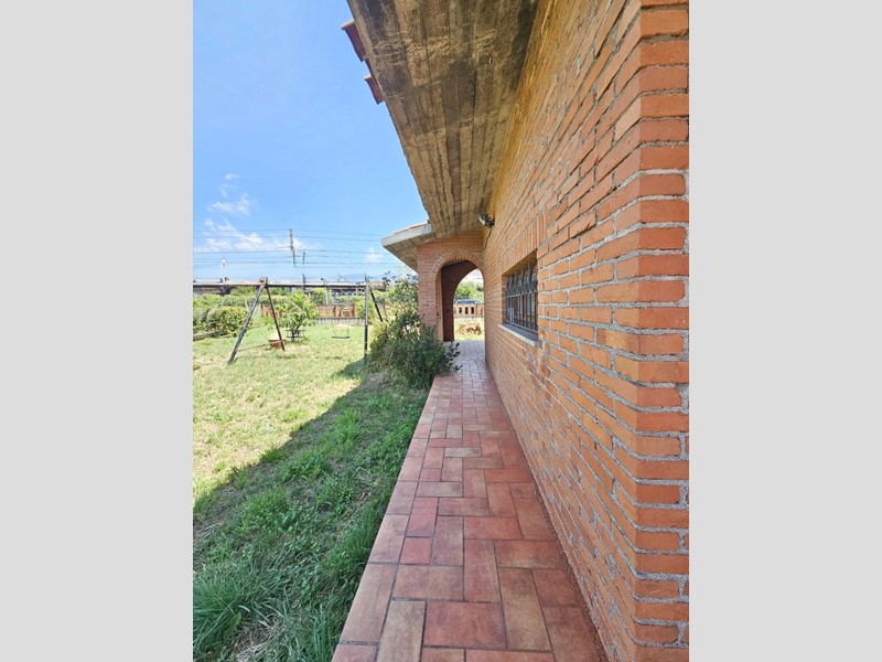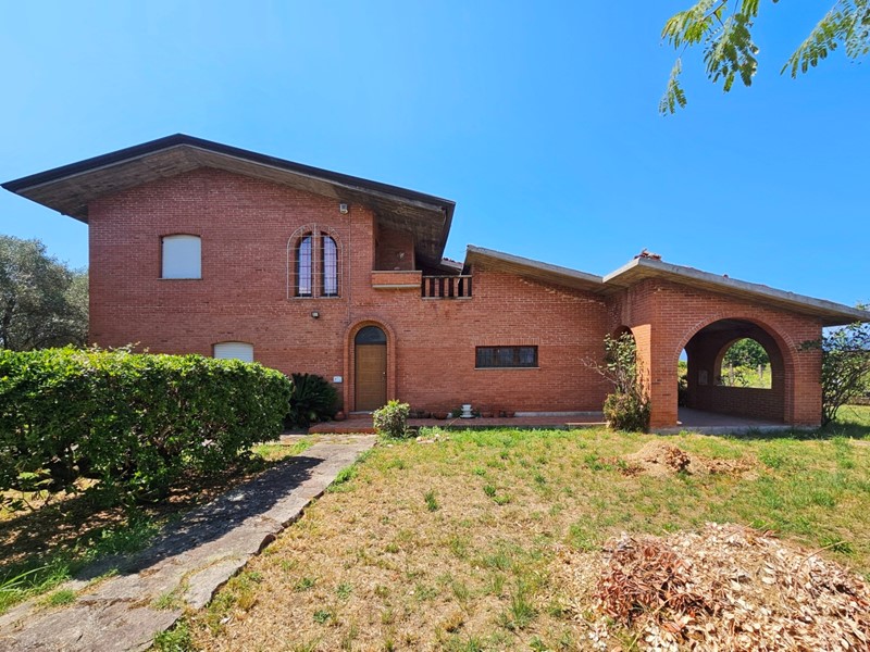 L'immobile si posiziona in zona defilata dal traffico nel verde ma nelle vicinanze della ferrovia, ampia metratura distribuita su due piani così suddivisa: doppio ingresso, soggiorno con accesso al portico, cucina semiabitabile, seconda zona giorno con soggiorno e cucinino, una camera matrimoniale e un bagno finestrato con doccia; dalla zona giorno è possibile accedere direttamente al garage doppio. Salendo al piano superiore troviamo: tre camere matrimoniali, un bagno finestrato con vasca e il terrazzo. Completa la proprietà l'ampio terreno che circonda l'abitazione. L'immobile necessita di interventi di ristrutturazione interna in quanto sono state rimosse le gronde e le canale provocando gravi infiltrazioni d'acqua. Possibilità di suddivisione dell'immobile in due unità abitative.