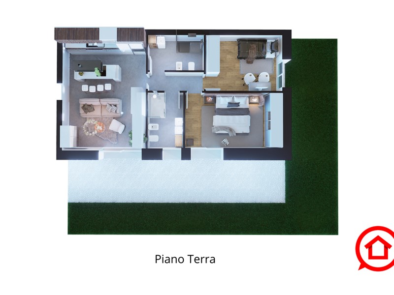 Appartamento B5 - Armonioso e riservato, trilocale con layout funzionale e giardino privato. Il trilocale vanta una luminosa zona living con cucina. Un corridoio conduce a due camere da letto – una matrimoniale e una singola – e a due bagni, di cui uno con finestra. L’unità è affiancata da un giardino riservato. Una combinazione perfetta per chi cerca comodità, luce naturale e spazi ben distribuiti.