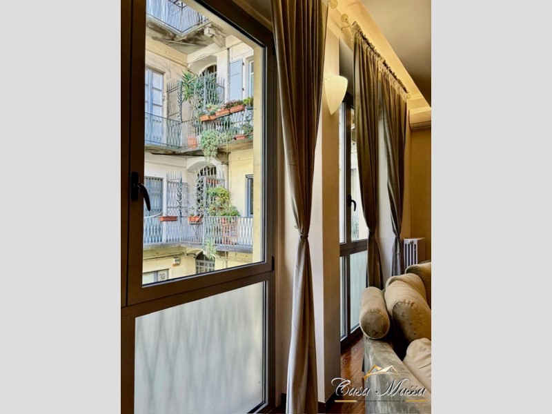 Via San Quintino nell'isolato compreso tra Corso Galileo Ferraris e Via Bellini in stabile d'epoca risalente all'ultimo ventennio del 1800, proponiamo unità immobiliare composta da doppi ingressi, ampia sala, cucina, sala da pranzo, due camere da letto, studio, tripli servizi, completata da un ampio box auto posto nella corte interna e cantina. L'appartamento, oggetto di un generale intervento di riqualificazione risalente al 2015 si presenta in ottimo stato di manutenzione. Derivante dalla fusione di due unità, si sviluppa al piano primo nel corpo di fabbrica eretto sull'interno corte. Il progetto di ristrutturazione ha permesso di offrici una ridistribuzione degli spazi interni di assoluto carattere, con una chiara suddivisione delle zone ed un altissimo livello di fruibilità degli ambienti. L'ingresso principale, dal vano scala servente soltanto due unità abitative, si apre in una ampia sala, con pavimentazione in parquet in ciliegio, risalente all'epoca di costruzione ed un grande camino; un cameretta adibita a studio, un vano servizio oltre la cucina, attigua alla sala da pranzo, realizzata nell'elegante ed originale struttura a veranda, completano la zona giorno, che si disimpegna, attraverso un grande distributivo, che concede l'acceso ad un ulteriore bagno di servizio, dall'area notte, costituita da due camere da letto, una delle quali divisibile e dotata di un servizio privato oltre ad un accesso secondario ad altro vano scala condominiale. Degna di nota l'attenzione al recupero conservativo delle volte affrescate, che ci regalano un giusto connubio tra la contemporaneità delle ampie vetrate, delle linee essenziali degli elementi in muratura e l'epoca di costruzione, che si mostra fiera, invariata nel corso degli anni, in ogni elemento architettonico, come il bow window posto ad impreziosire il vano scala. Completo di impianto di antifurto e climatizzazione, ha pavimentazioni in parquet e gress, corpi riscaldanti in acciaio tubolare ed è dotato di impianto di riscaldamento autonomo, che contribuisce a ridurre le spese di gestione già decisamente contenute. Completano la proprietà un vano ad uso cantina ed un box auto con accesso automatizzato, elemento di davvero non facile reperibilità - Maggiori Dettagli: Cassaforte, Camino