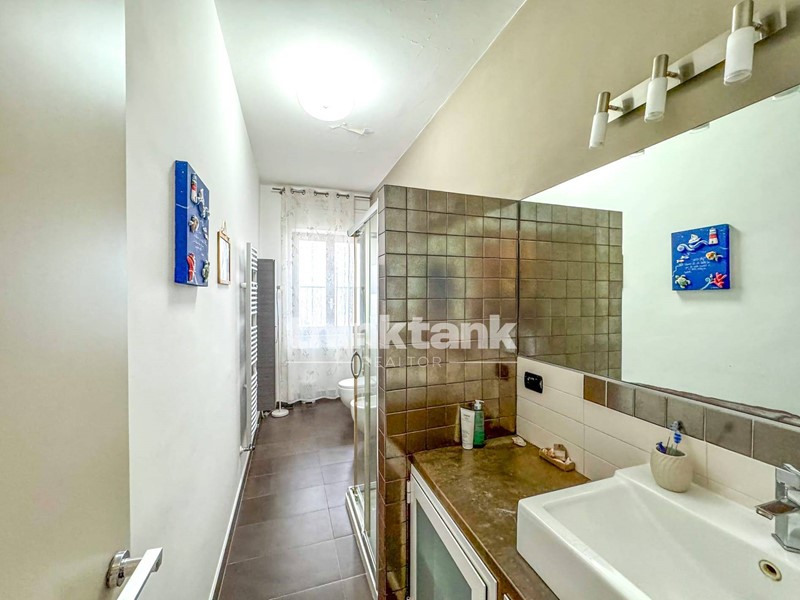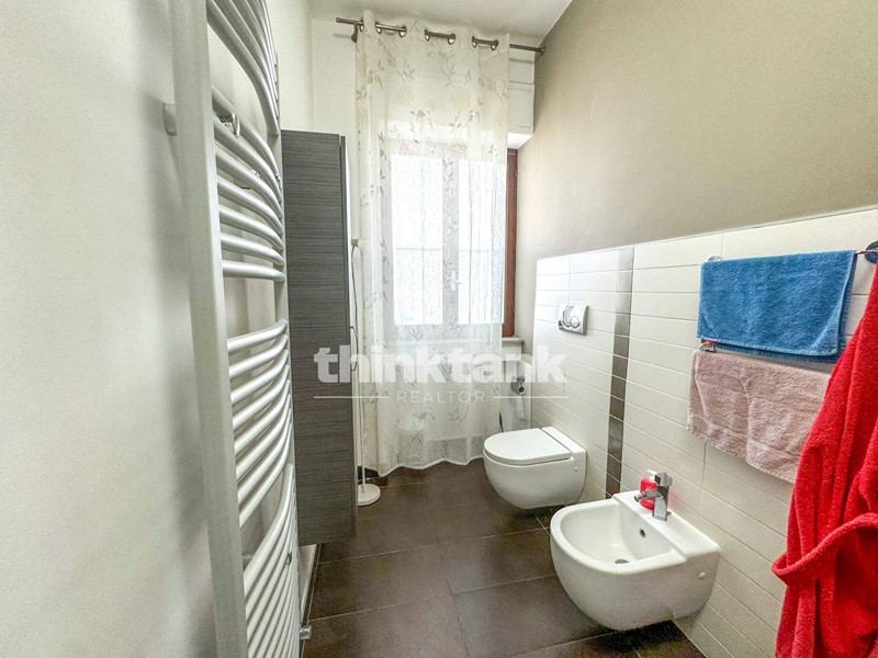 Bagno grande e confortevole, dotato di termo-arredo, sanitari sospesi e finiture contemporanee