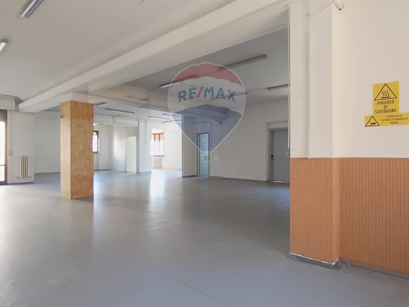 L' immobile è composto da un negozio con vetrina sulla via principale a alta visibilità, comunicante sul retro, zona laboratorio open space, dotato di servizio igienico, montacarichi e impianto elettrico industriale, porta antipanico e doppio ingresso nel resede privato.