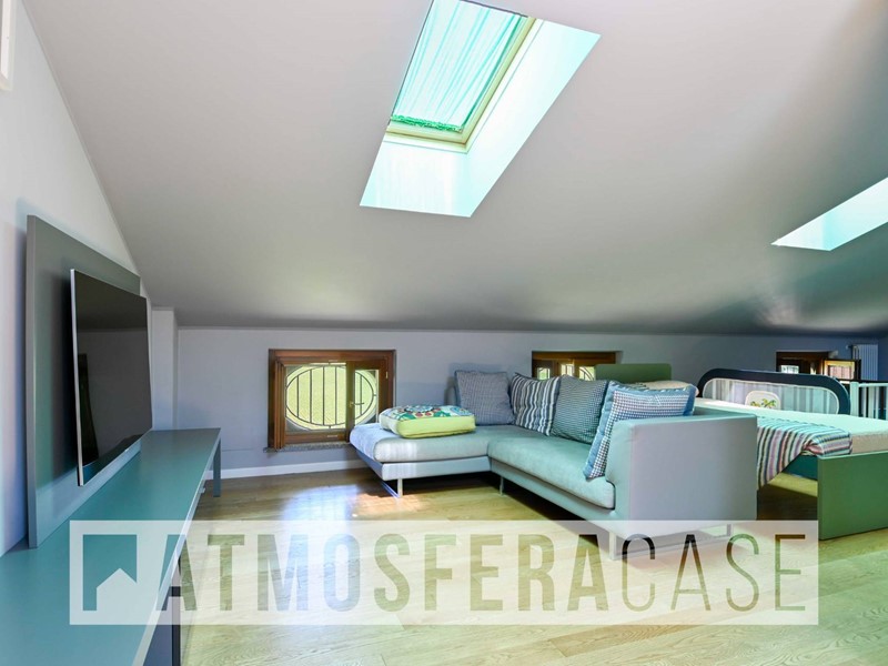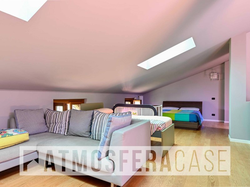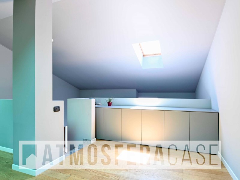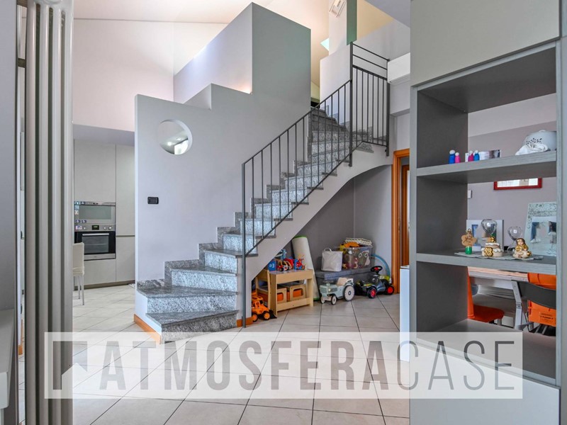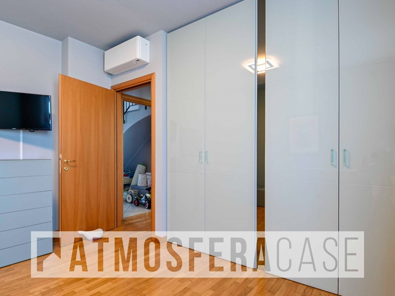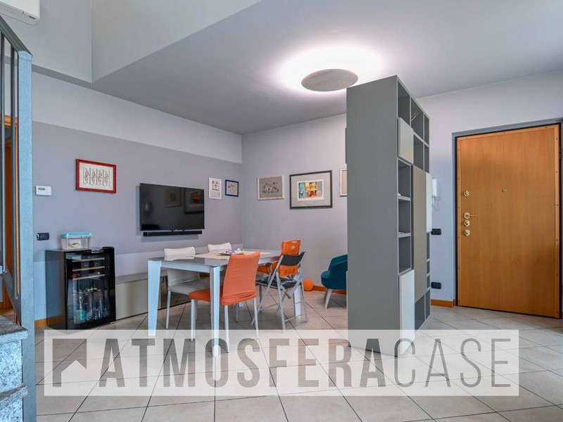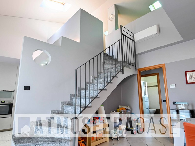 Atmosfera Case propone in Esclusiva, in recente e tranquillissimo contesto residenziale finemente curato nei minimi dettagli, elegantissimo appartamento Trilocale posto al secondo piano servito da ascensore e disposto su due livelli, con ampia terrazza godibile, doppia esposizione ed ampio box al piano interrato.
