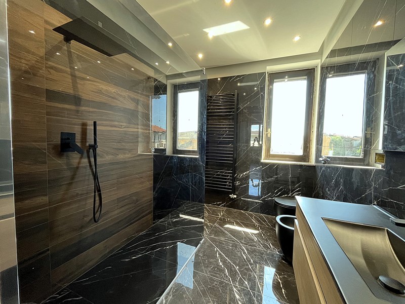 Al piano primo, la zona notte ospita tre spaziose camere da letto, tutte servite da balcone, e un secondo bagno completo.