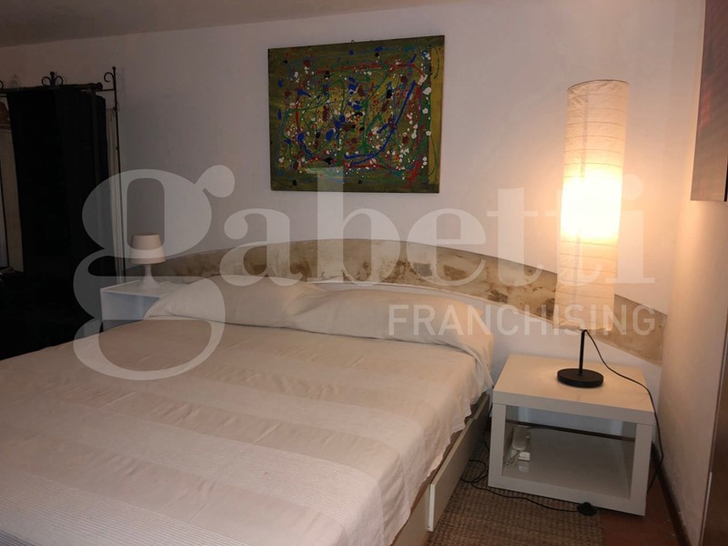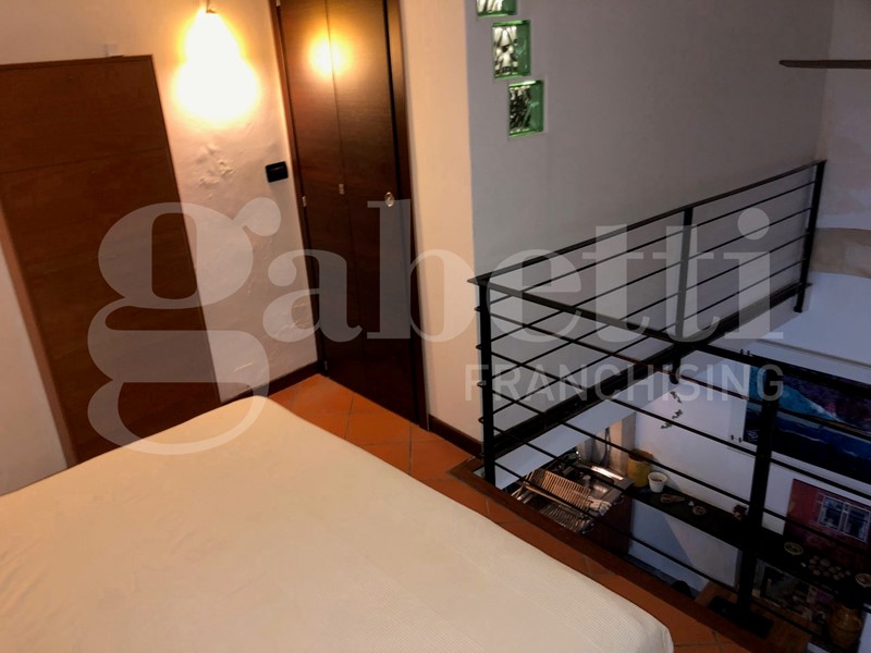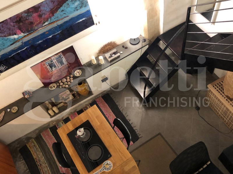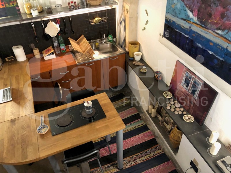 La casa ha un unico ambiente cucina soggiorno al piano terra, che viene diviso nella zona living, con tavolino e sedute, e nella zona cucina, con piano induzione e frigorifero e lavabo. Al piano soppalcato, raggiungibile con scala in ferro ed esteso per ampia parte del perimetro della casa, sono presenti la camera da letto e il bagno con doccia. Come anticipato, l'immobile viene venduto arredato includendo il piano induzione, il condizionatore senza unità esterna, il frigorifero, le sedute e i tavoli, gli arredi in camera da letto e nel bagno.