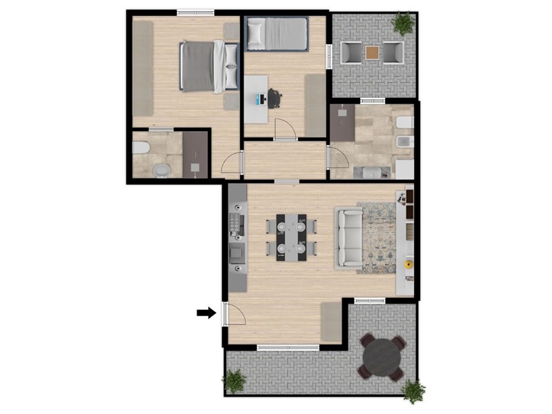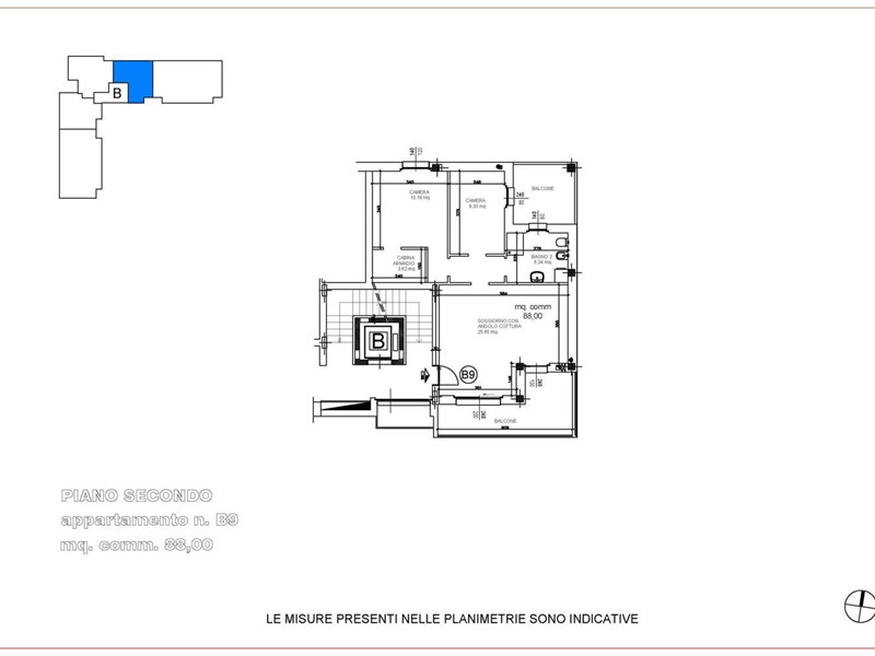 - Appartamento B9:3 locali doppi servizi con terrazzo posto al secondo e ultimo piano.
