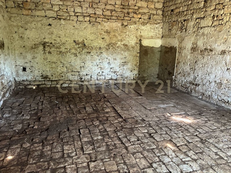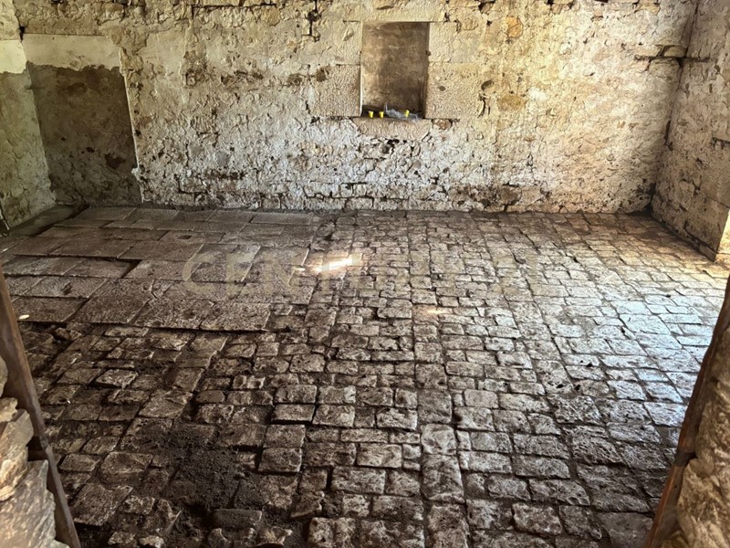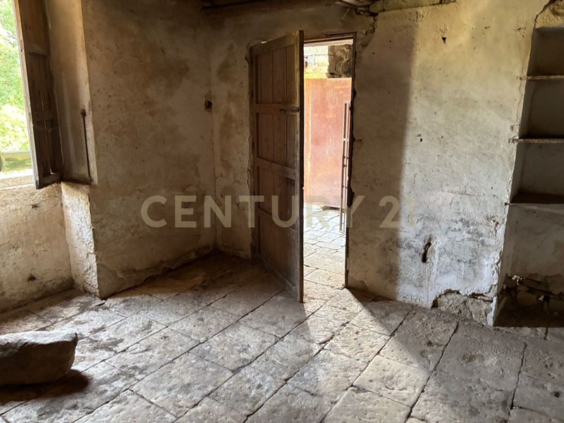 Internamente, le stanze vantano soffitti con travi in legno a vista, che conferiscono calore e carattere agli interni. I pavimenti sono posati con grandi piastrelle in pietra rustica, in linea con lo stile tradizionale delle case siciliane. Le pareti imbiancate a calce contribuiscono a creare un'atmosfera luminosa e ariosa, mentre le piccole finestre profonde permettono alla luce naturale di filtrare all'interno, mantenendo al contempo l'efficienza termica degli spessi muri in pietra. La planimetria della proprietà, visibile nella scansione 3D, rivela stanze interconnesse con porte ad arco, creando una fluidità tra gli spazi, tipica delle antiche case mediterranee. La semplicità della struttura e l'uso di materiali locali riflettono le sue radici storiche e l'adattamento al clima locale.