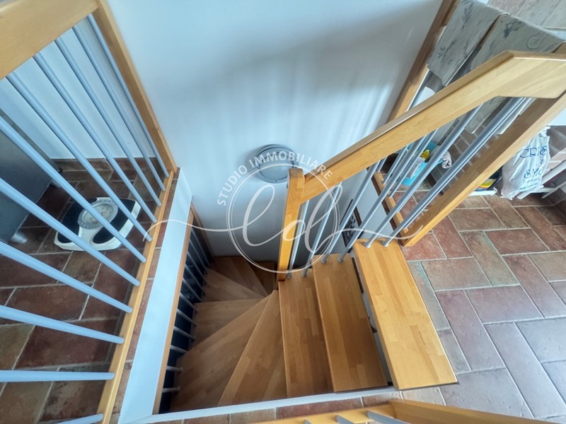 Dispone di due ingressi, impianto di allarme, aria condizionata, soffitti con bellissime travi in legno massello pavimenti in cotto e portoni blindati.