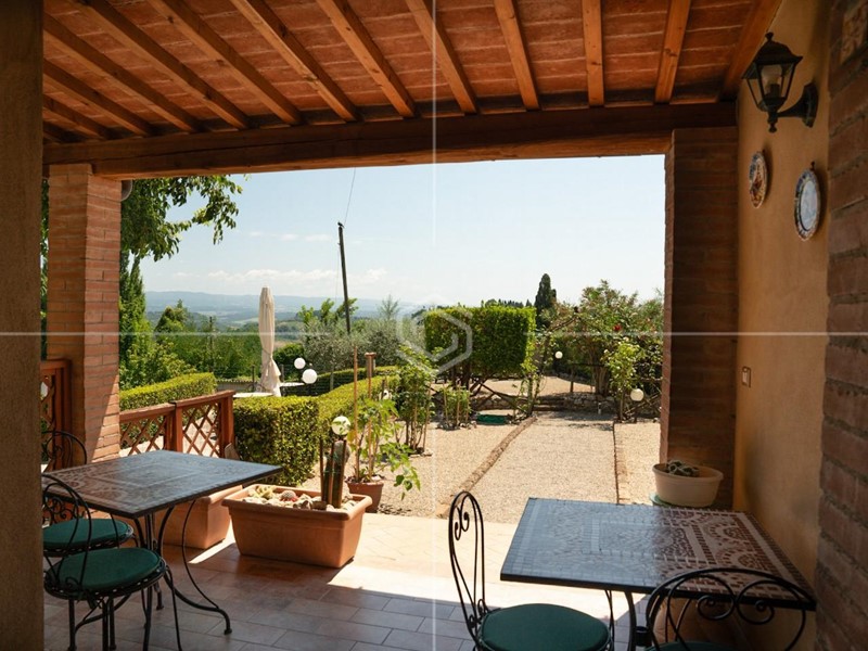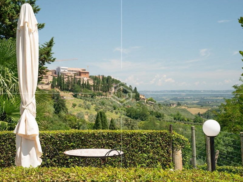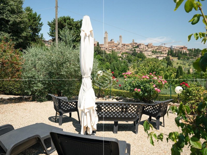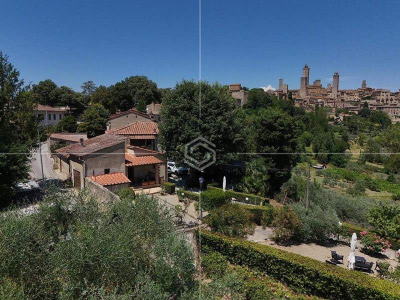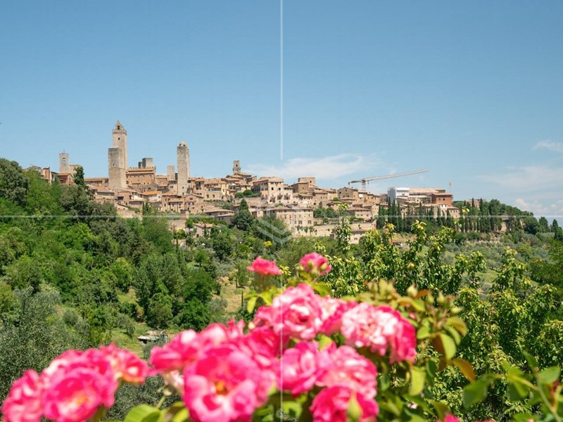 è qui che sorge questa straordinaria proprietà, incastonata nella campagna di San Gimignano, a pochi minuti a piedi dal suo celebre centro storico.