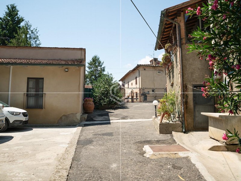 Il parcheggio privato, i grandi spazi esterni e le viste aperte sulla campagna toscana completano un contesto armonioso, riservato e pronto ad accogliere nuove visioni.