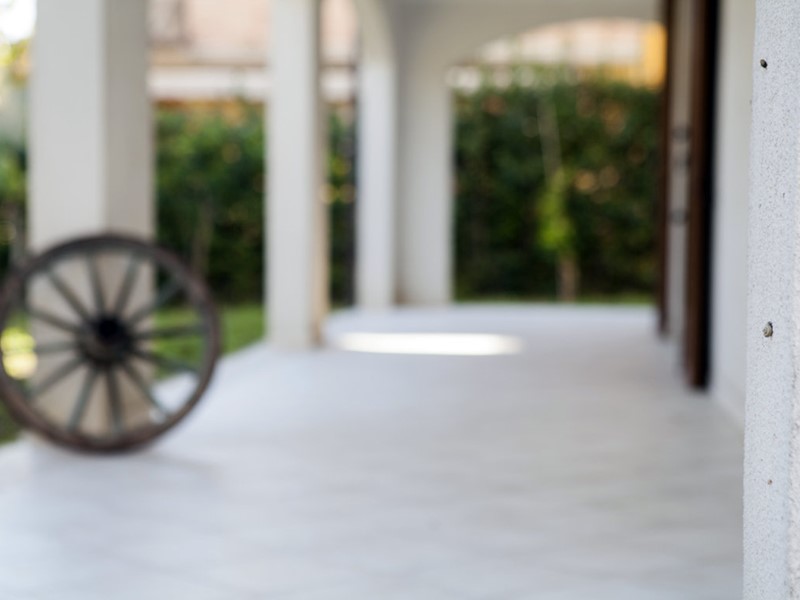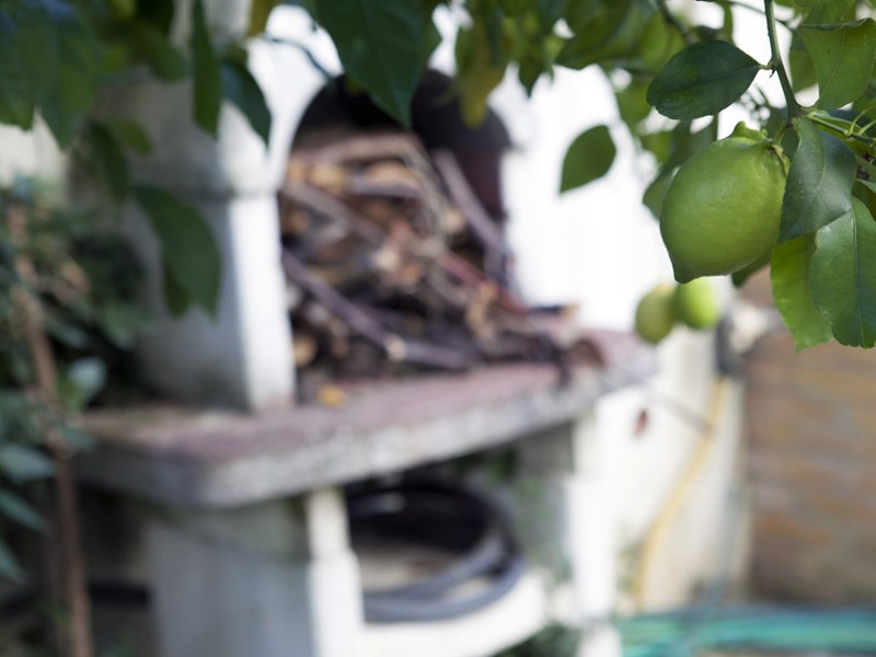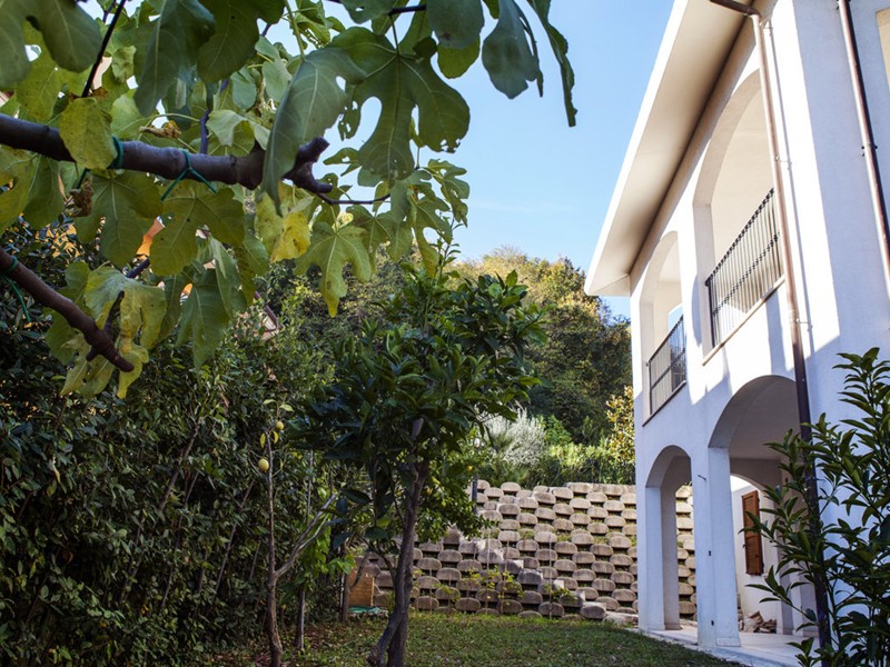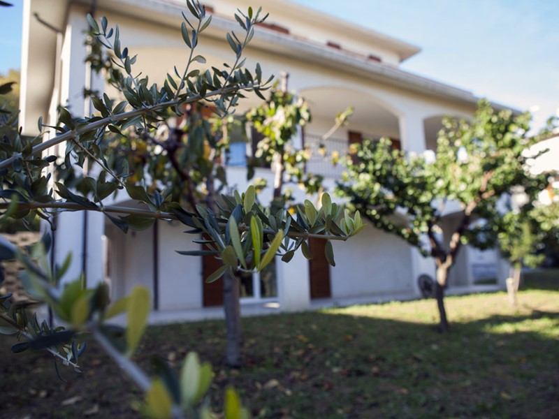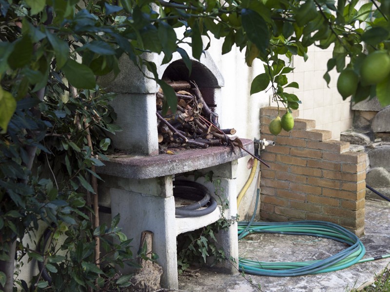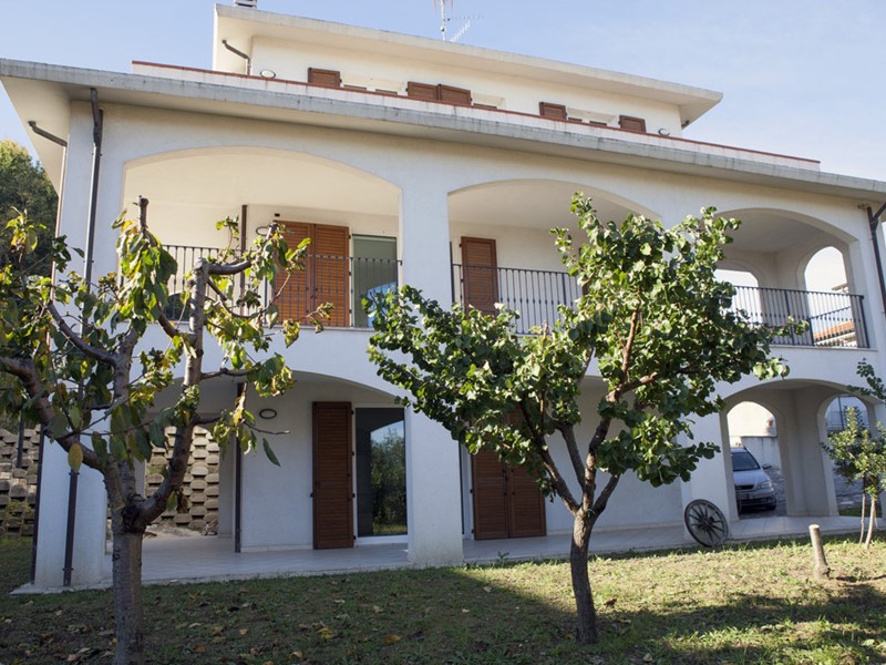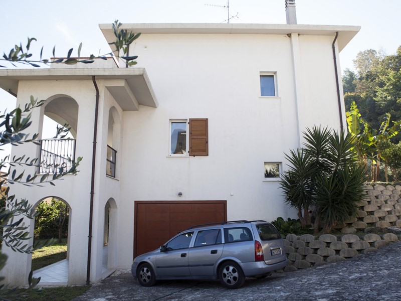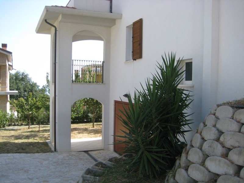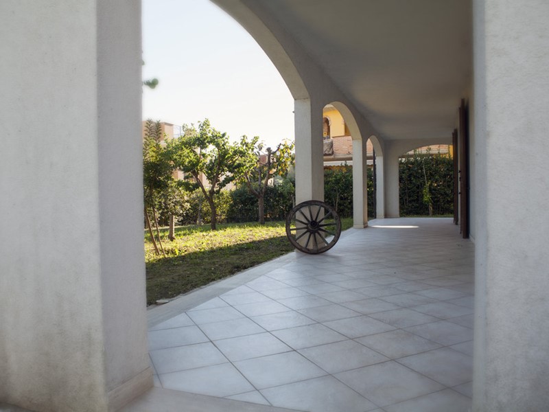 L' esterno della villa presenta un giardino di circa 660 mq con parte pavimentata e coperta a loggiato, recintato su tutta la proprietà completa di cancello in ferro battuto lavorato e elettronico, presenta un impianto di irrigazione automatica con serbatoio di recupero dell'acqua piovana, barbecue con allacci gas ed elettrico, alberi da frutto su tutta la superficie quali:ulivi, melograni, banani, ciliegi, albicocche, peri, meli, fico, limoni, aranci.