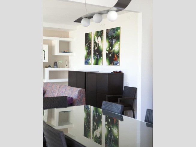 - Piano terra delle dimensioni 85 mq. circa, a destinazione abitativa, funzionalmente diviso in un ampio salone con termocamino e una cucina abitabile attualmente in open space, uno studio, un ripostiglio, un guardaroba e un comodo bagno principale, completano il piano un'ampia terrazza soggiornabile e vista mare coperta di circa 50,00 mq