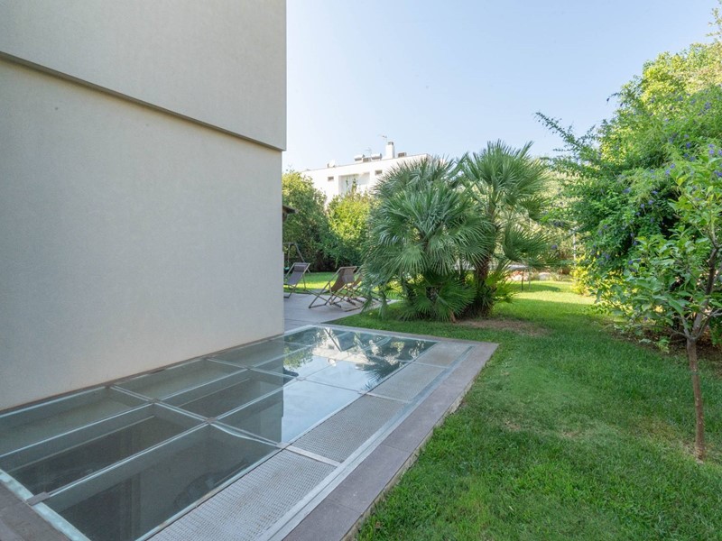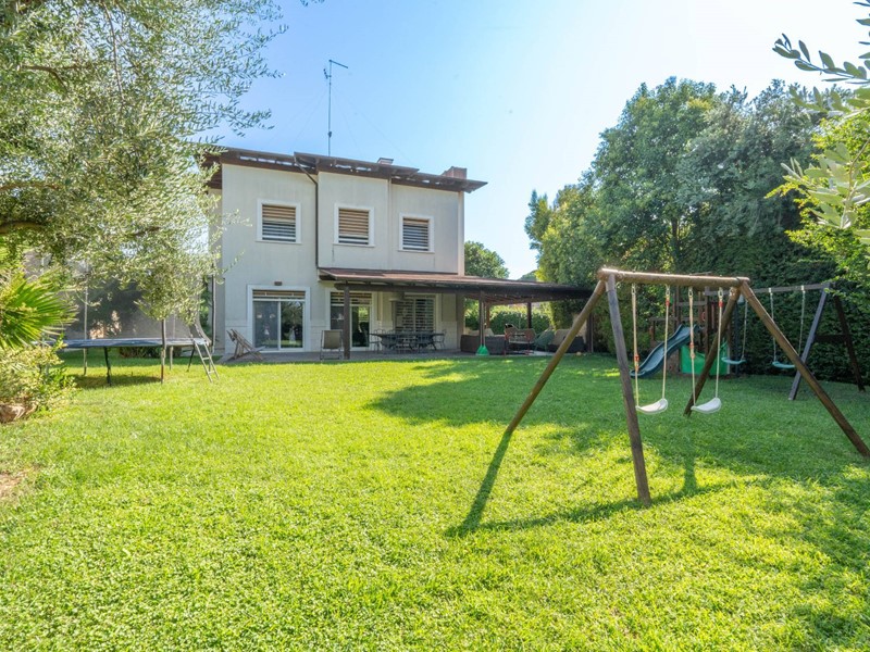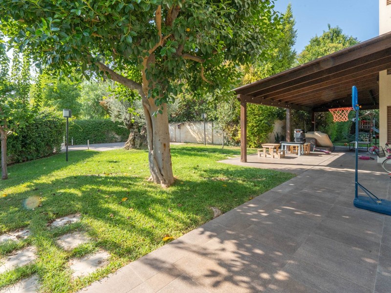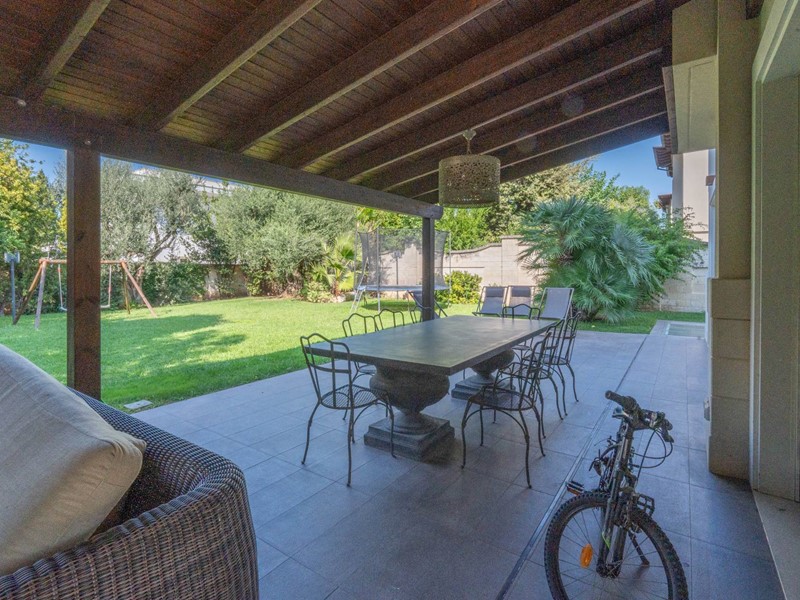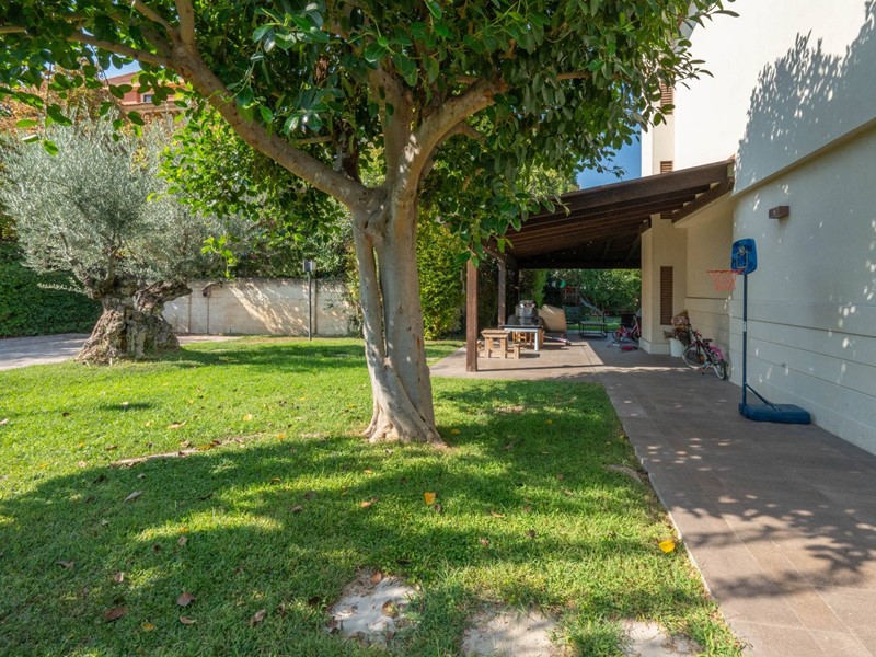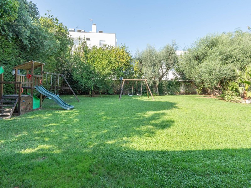 Il bel giardino attrezzato di 700 mq , che circonda tutta l'abitazione, è impreziosito da prato inglese, ulivi secolari e alberi da frutto, tutti serviti da un sistema di irrigazione automatica.