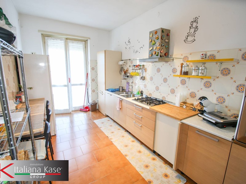 L'alloggio è composto da una cucina con accesso al sul balcone, un soggiorno spazioso con porta finestra che permette di accedere al terrazzo privato.