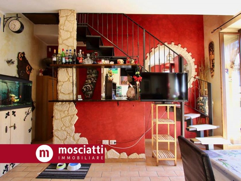 L'abitazione, si dispone su due piani, primo e secondo, dall'ingresso si scopre la zona giorno open space luminosa, con angolo bar, un primo bagno e l'accesso al TERRAZZO di mq. 42 circa, attrezzato per zona relax e zona barbecue, salendo al piano superiore, mansardato, ci sono una stanza, un ripostiglio e un altro bagno.