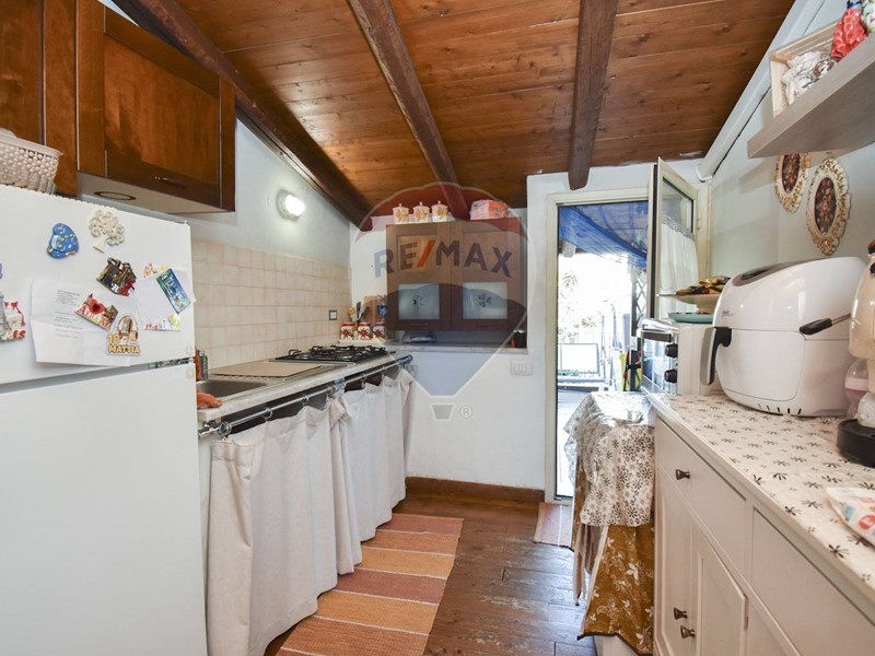 Da una scala interna si accede al primo piano con ingresso su un soggiorno il quale collega il bagno, la camera da letto e l'angolo cottura che godono di due balconi.