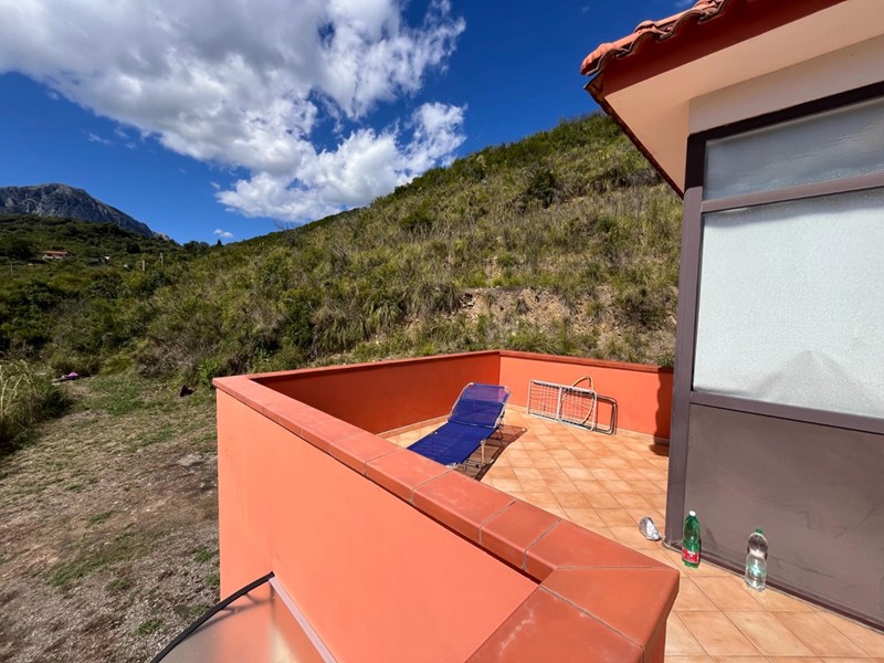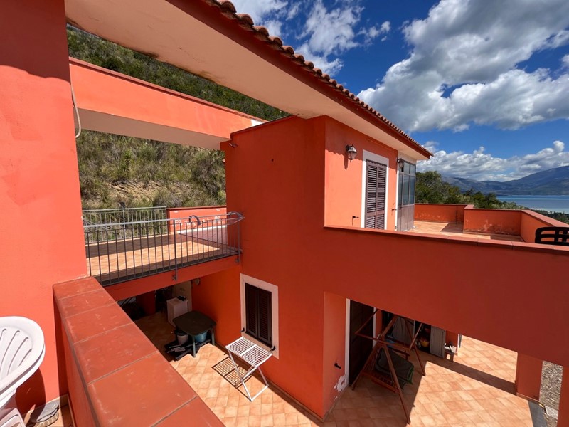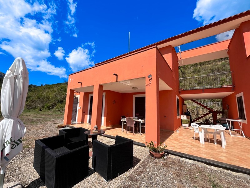 SCARIO: In zona collinare e panoramica, ideale per amanti della natura e del relax assoluto, fabbricato di recente costruzione suddiviso in due unità autonome con terrazzi panoramici, giardino di pertinenza di mq.986 e terreno di mq.2.000. Il fabbricato si presenta in ottime condizioni, ben rifinito e arredato e si compone al piano terra di 3 vani, bagno e portico, una scala esterna conduce al piano primo costituito da 2 vani, bagno e due ampi terrazzi praticabili di cui uno con splendida vista sul Golfo di Policastro. Il fabbricato dispone di solarium panoramico al piano copertura.