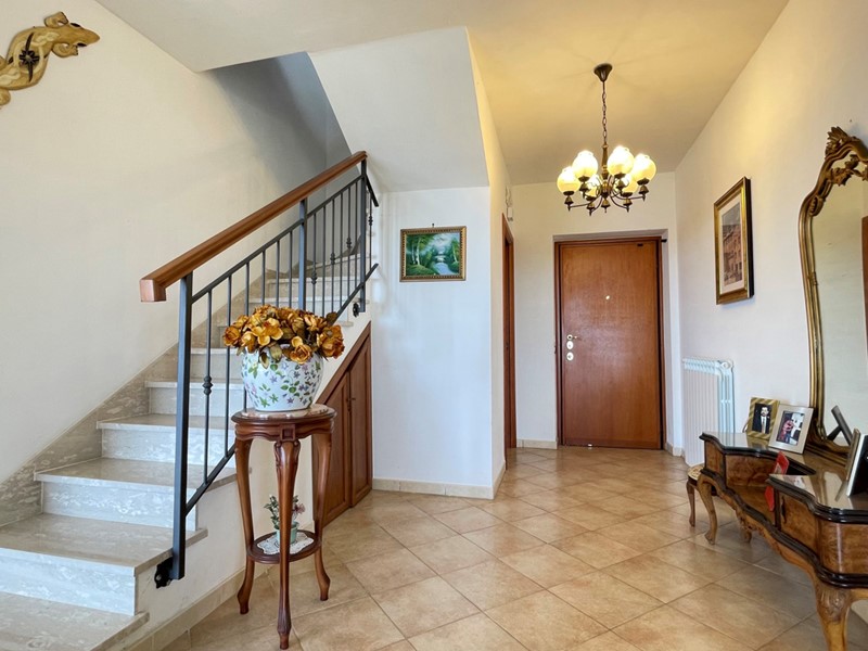 In posizione collinare, immersa nel verde e nella quiete assoluta di Porciano, proponiamo in vendita una villa indipendente sviluppata su tre livelli, con vista dominante sulla vallata e circa 5.000 mq di terreno piantumato ad ulivi.
