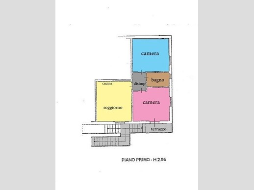 Si accede alla proprietà tramite un vialetto privato con uno spazio condominiale e all’appartamento da una scala esterna che si dirama e serve due unità immobiliari.