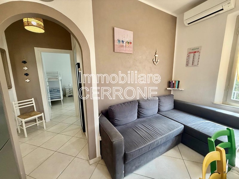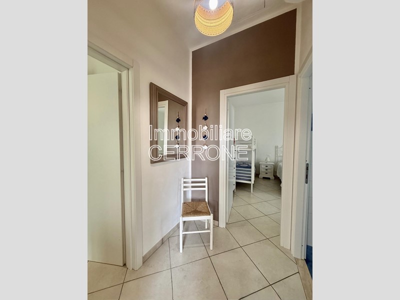 A completare la proprietà un terrazzino di ingresso, dal quale sporgendosi si vede una porzione di mare, ed infine un comodo ripostiglio al piano terra dotato di doccia e utile anche per ricovero biciclette o lavanderia.