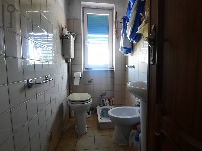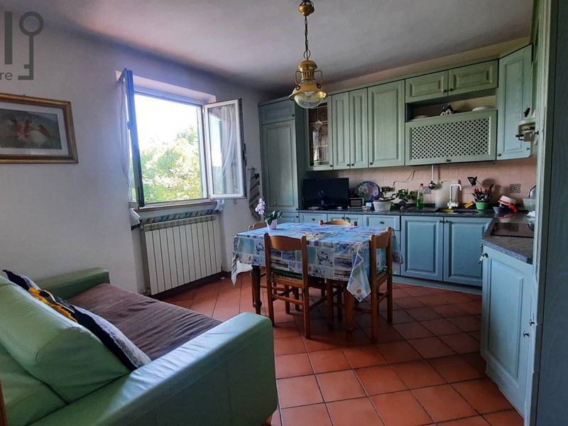 Ingresso all'abitazione tramite portoncino blindato su vano scale, che conduce al piano primo abitativo. Da qui si arriva subito alla zona giorno, composta da una bella sala con camino d'epoca e forno a legna; da qui accesso tramite disimpegno ad un bagnetto con doccia e alla cucina perfettamente abitabile.