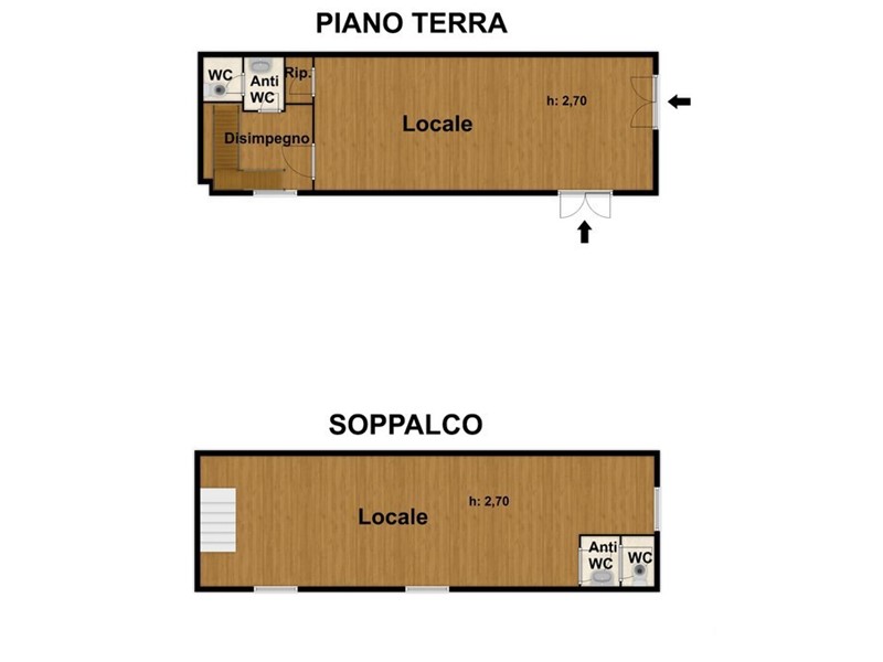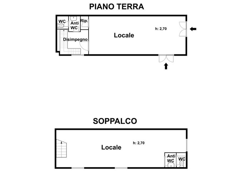 Il locale si sviluppa su due livelli per una superficie complessiva di 73 mq commerciali: