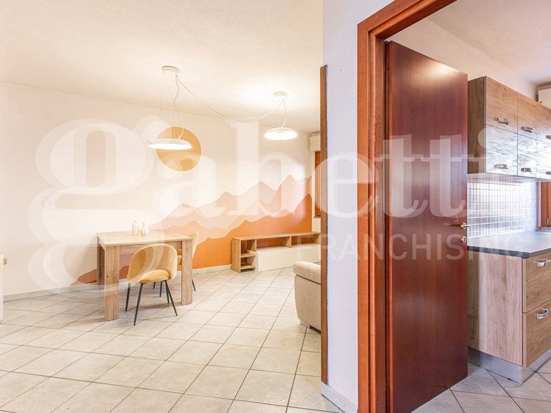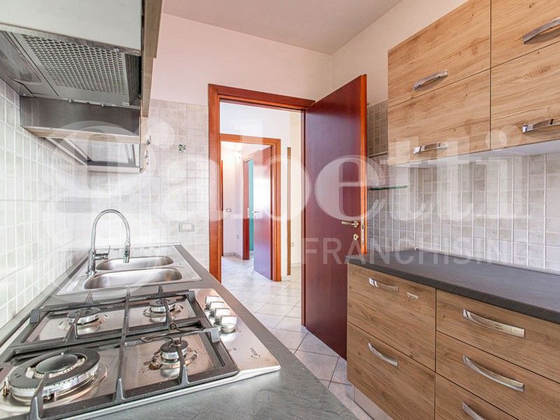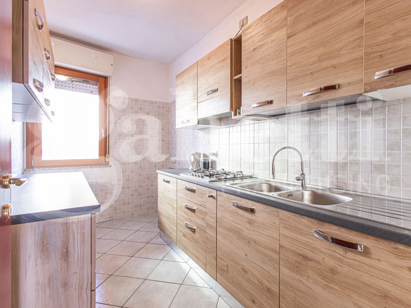 Tramite portoncino blindato accediamo alla zona giorno, suddivisa in due ambienti quali cucina abitabile e soggiorno di forma regolare, dove tramite porta finestra abbiamo accesso alla veranda che introduce al cortile.