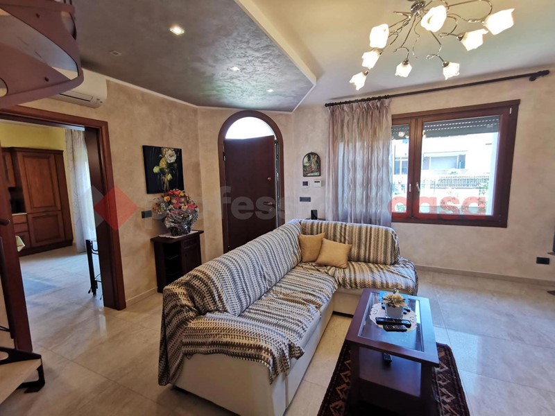 L'abitazione si sviluppa su due livelli e offre una zona giorno luminosa, tre ampie camere da letto e due bagni. Completano la proprietà un garage doppio di 30 mq, una comoda lavanderia e un giardino piantumato, dotato di impianto di irrigazione sia a goccia che a spruzzo.