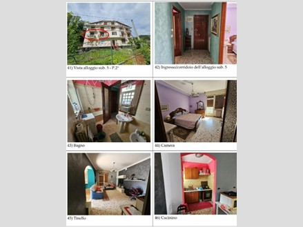 Bene 5 : Piena ed intera proprietà di un appartamento al secondo piano composto da ingresso, tinello con cucinino, due camere, bagno e tre balconi; al P.T. cantina pertinenziale.